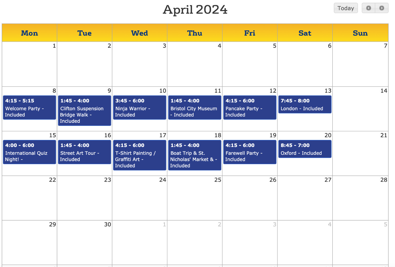 Este es un ejemplo de las actividades a realizar, siempre acompañados de monitores de International House y de nuestra academia.
